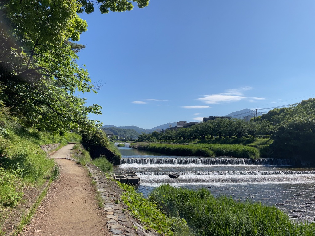 この川のはるか向こう、右手に見えるが比叡山です。