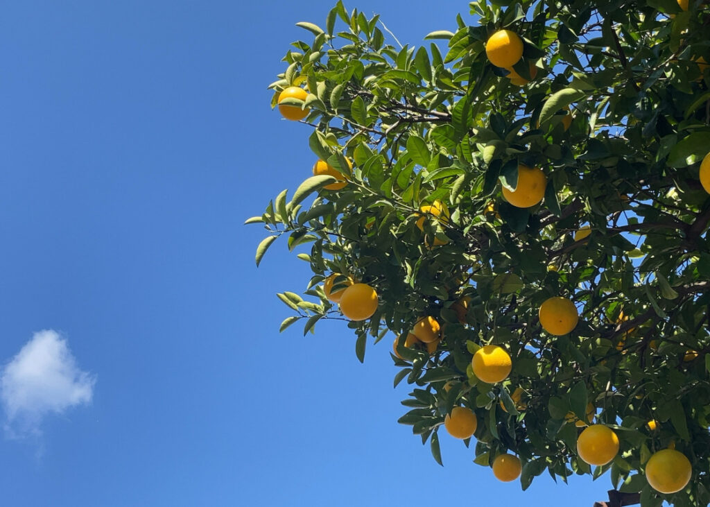 写真:冬空の柑橘はエネルギッシュだ 実家の近くの空である。大阪の冬は曇り空が多いのだが、この日は澄みきった高い空だった。その中で、たわわになる柑橘。種類はわからないが、エネルギーの塊だ。 梶井基次郎の「檸檬(れもん)」という小説を思い出し... -