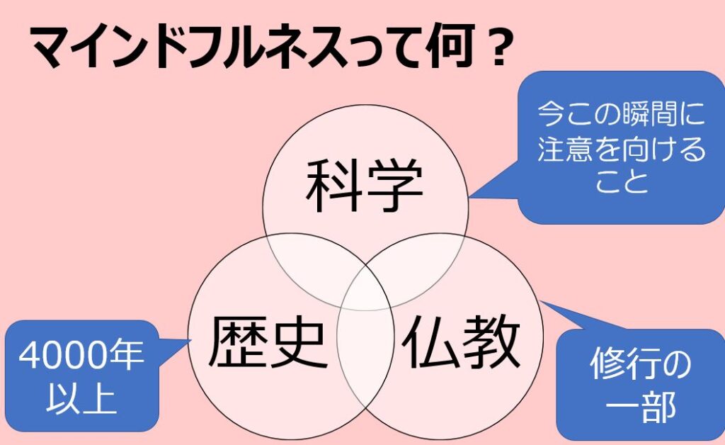 まず、長い歴史がある。「マインドフルネスは、ブッダが再発見した方法である」と言われることがあります。